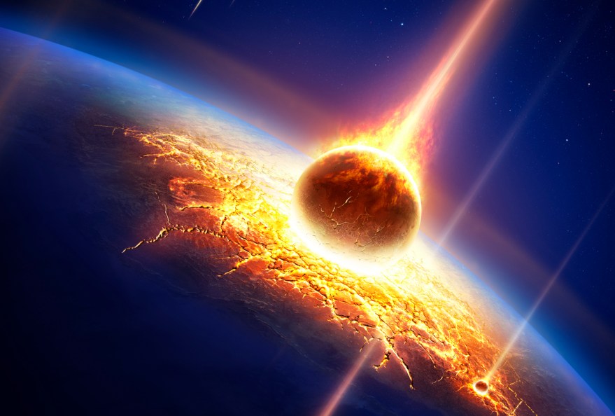 Terran: Seeing a black sky and large yellow glowing “meteor” maybe 5-10% the size of the planet it hits.