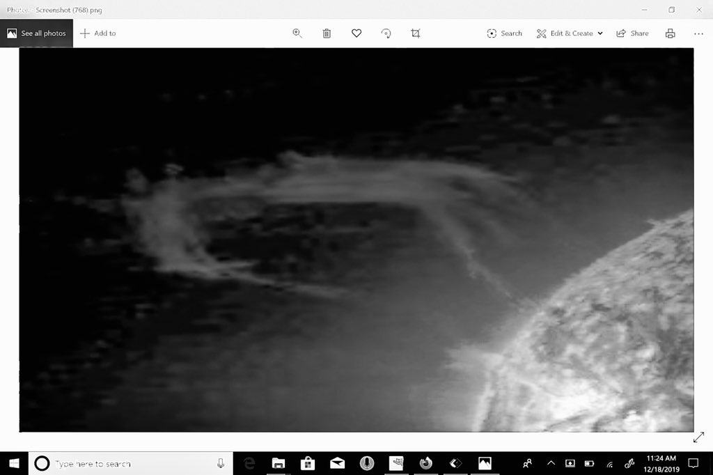 Gina Maria Colvin Hill ,December 18, 2019*This looks  like a VERY LARGE ship that came out of the sun in the form of a CME. This is Stereo Behind EUVI 304